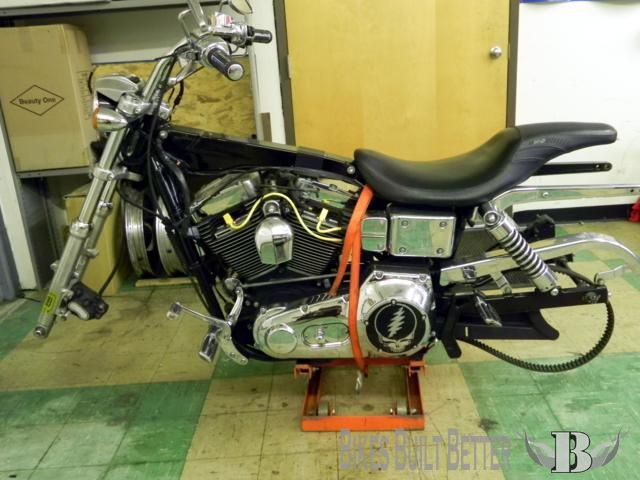 After an unfortunate accident, Lee took the opportunity to make some improvements to his Dyna Low Rider. Work by Bikes Built Better, paint by Visual Impact.